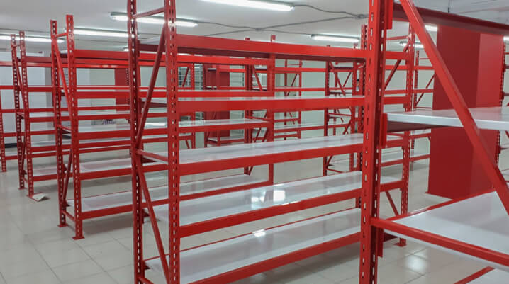 La estantería metálica proporciona una sólida estructura vertical para almacenamiento eficiente y seguro de cargas ligeras.